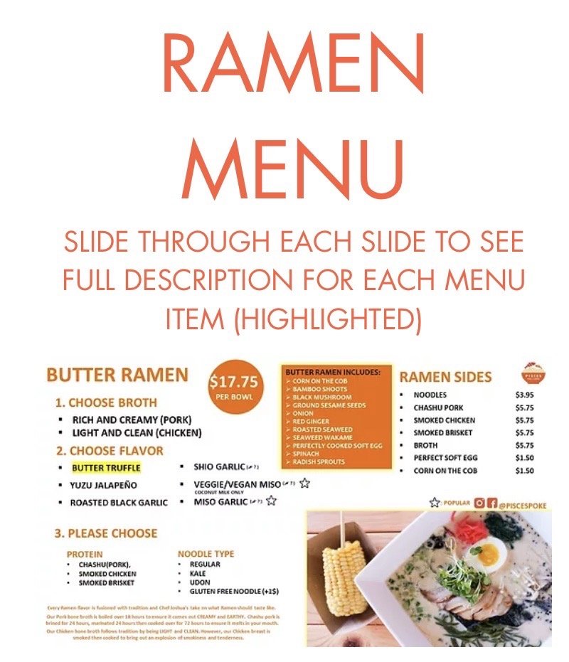 Welcome to Pisces Poke & Ramen, a vibrant culinary treasure located in the heart of West Hollywood at 7100 Santa Monica Blvd, Ste 135. This Asian-owned haven specializes in a delightful blend of poke and ramen, catering to pescatarians and food enthusiasts alike.